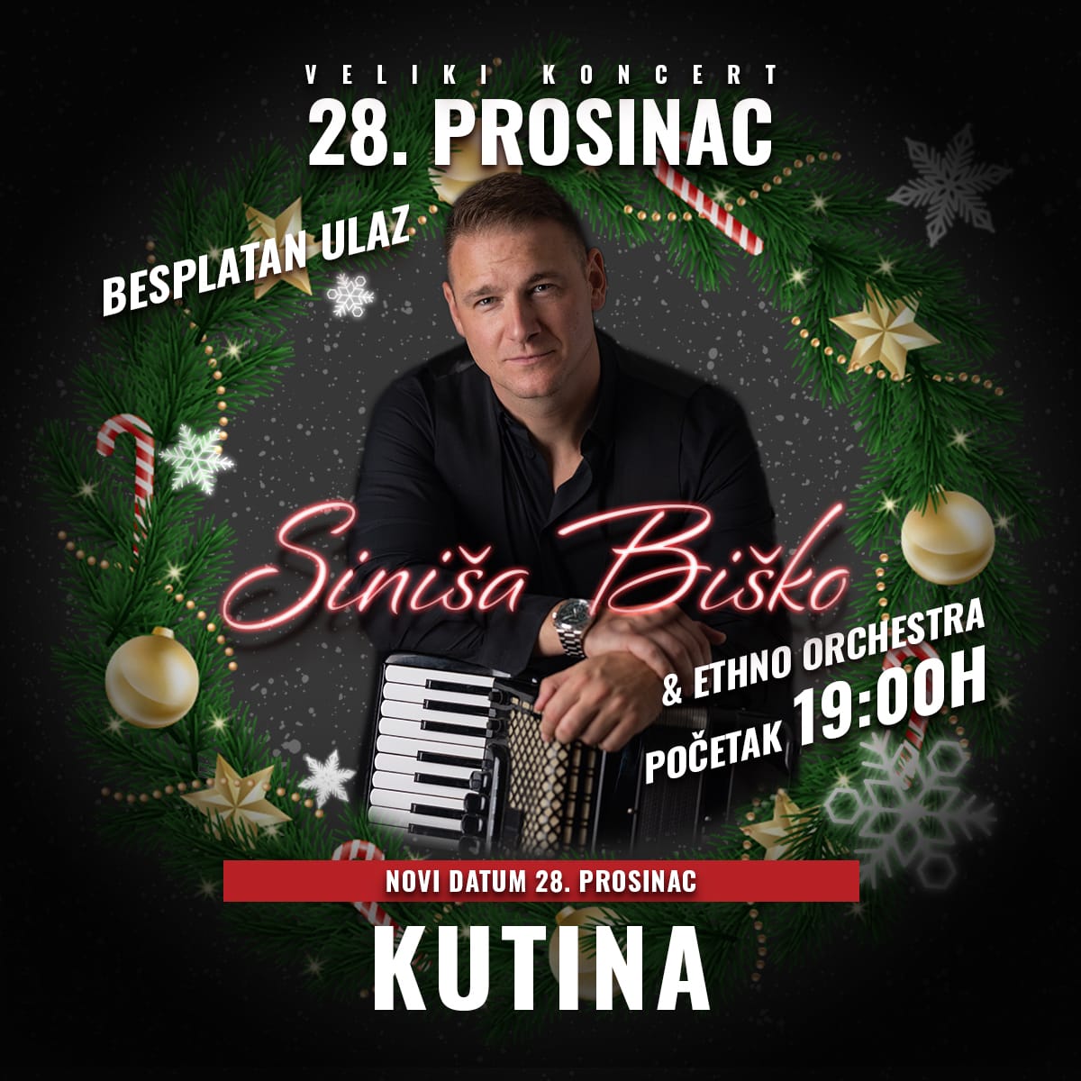 Kutina se priprema za veliku glazbenu večer u blagdanskom ozračju. U nedjelju, 28. prosinca, s početkom u 19 sati, na Trgu dr. Franje Tuđmana održat će se veliki koncert Siniše Biška.