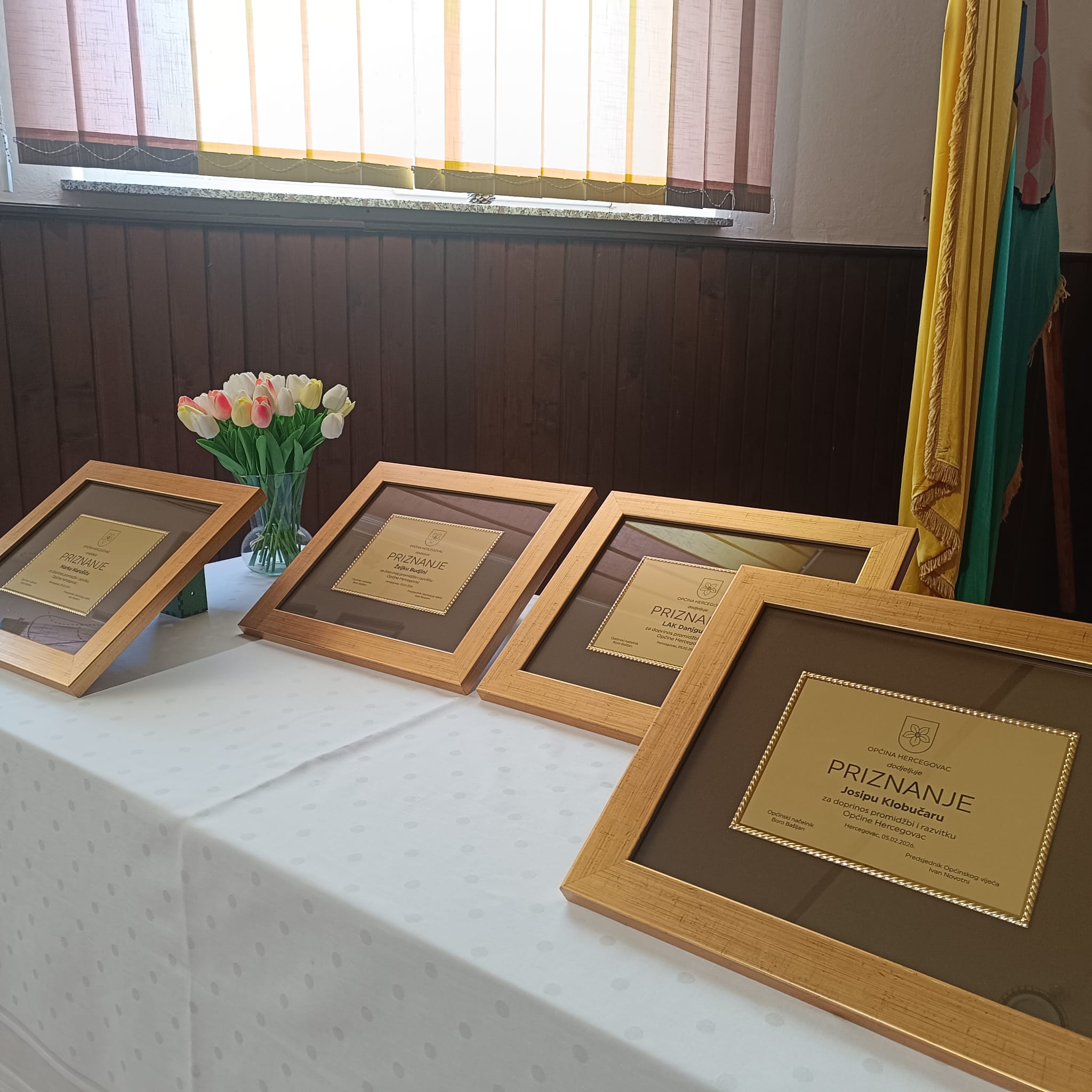 Uz župana Marka Marušića, među dobitnicima priznanja je Željko Budjina, dugogodišnji poduzetnik i donedavni predsjednik Općinskog Vijeća, glumac „Pučke scene“, Josip Klobučar te Ladislavsko amatersko kazalište „Danjgube“ čiji je predsjednik Željko Petak zahvalio u ime nagrađenih: “U ime nagrađenih i u svoje osobno ime zahvaljujem Općinskom vijeću i našem načelniku Bori Bašljanu na priznanjima, što trud i rad uvijek budu prepoznati. Ove nagrade su dokaz uspješnog rada naših udruga, a i pojedinaca u promicanju kulturnog i društvenog života naše općine. U ime svih nagrađenih želim zahvaliti i poželjeti puno uspjeha u daljem životu i radu. Također, Danjgubama želim uspješnu premijeru nove pučke komedije početkom trećeg mjeseca, povodom Dana žena u našem mjesnom domu u Ladislavu. Gospodinu Bašljanu, našem načelniku i svim djelatnicima Općine želim da i ova godina bude uspješna kao i sve dosadašnje i upućujem iskrene čestitke povodom Dana naše općine. Našem županu, gospodinu Marku Marušiću, veliko, veliko hvala za sav uložen trud oko dovršetka sportske dvorane jer ono što su generacije i generacije godinama sanjale sada je stvarnost, na ponos svih mještana naše općine. Župane, hvala vam u ime svih nas!“