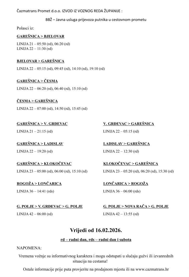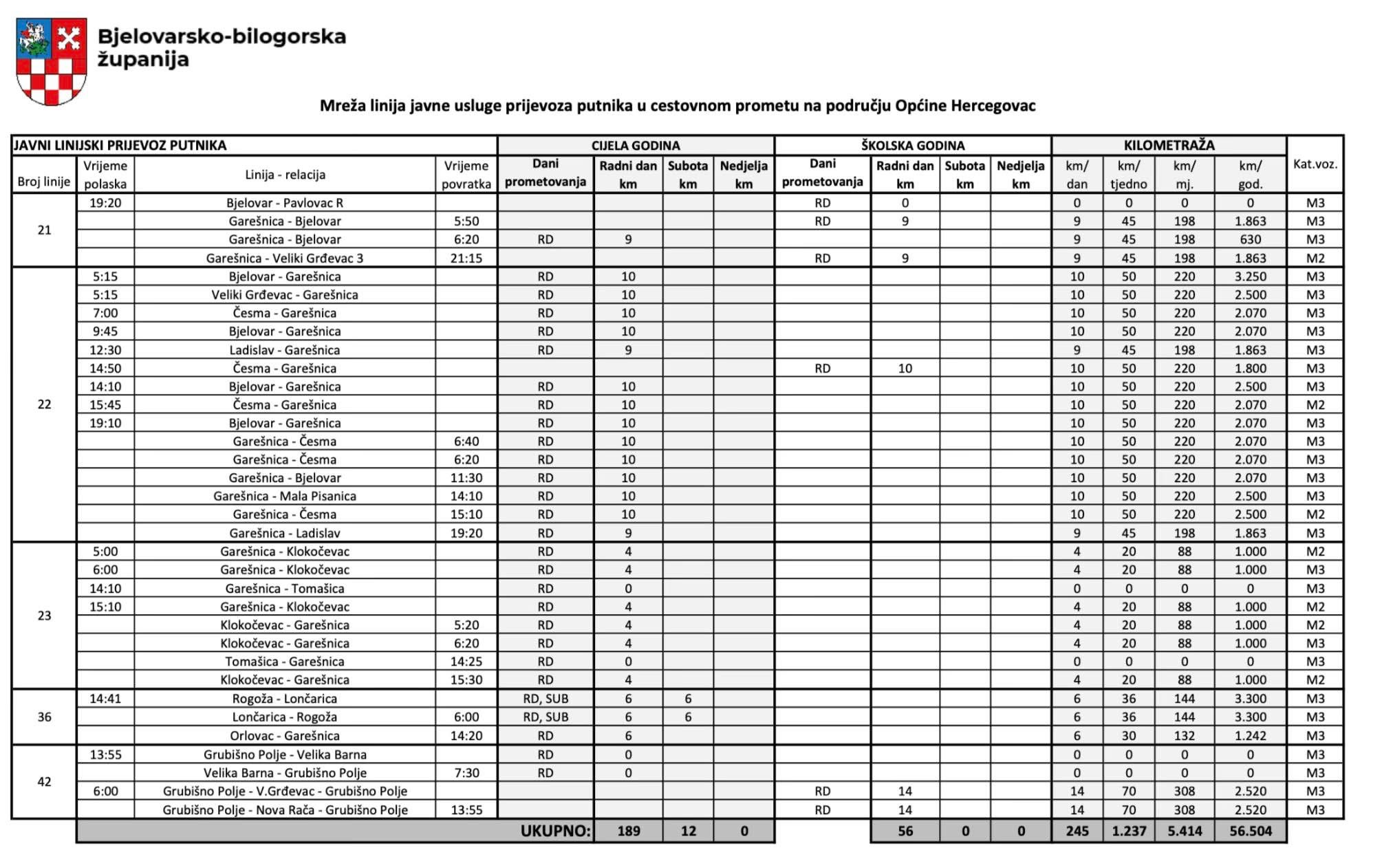 Dobra suradnja Općine Hercegovac i Bjelovarsko-bilogorske županije, uz dovršetak uređenja školske dvorane i nove škole u Palešniku, donijela je još jedan konkretan rezultat – pojačane autobusne linije. Naime, od 1. studenoga prošle godine uvedene su dodatne autobusne linije uz redovne, čime je mještanima omogućena bolja prometna povezanost s ostatkom županije.