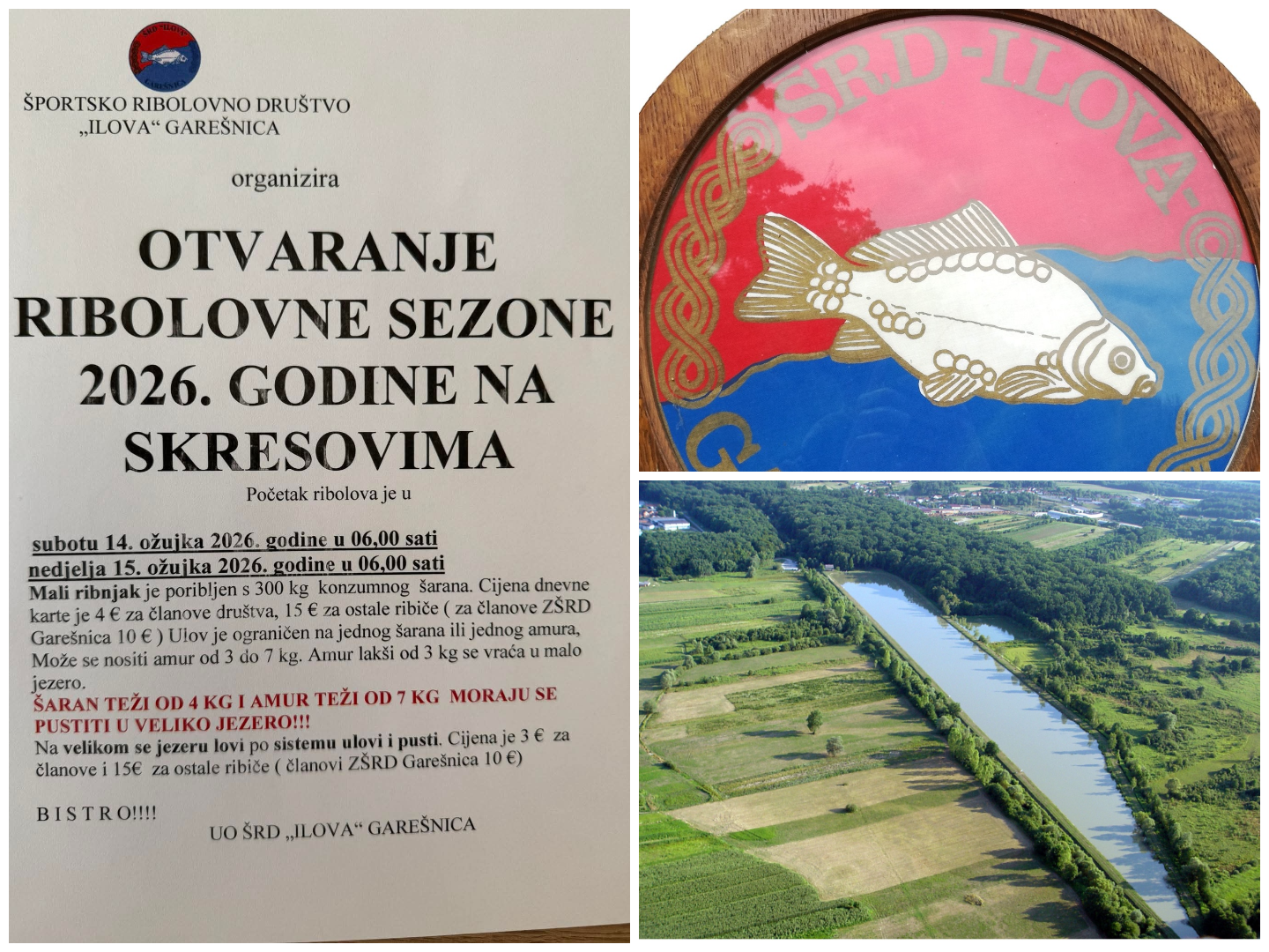 Športsko ribolovno društvo „Ilova“ Garešnica organizira otvorenje ribolovne sezone 2026. godine na jezerima Skresovi.