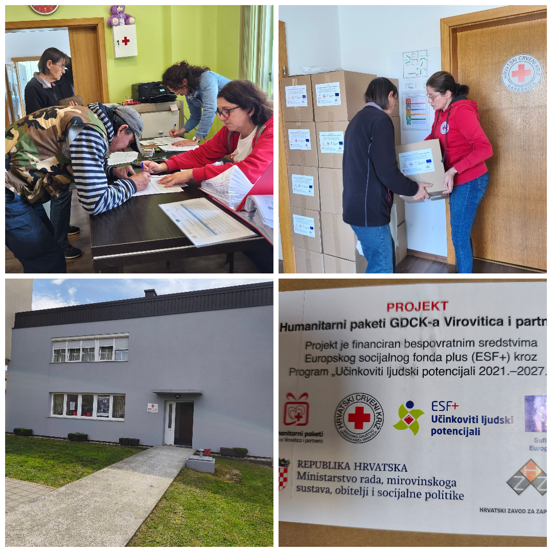 Humanitarni paketi Gradskog društva Crvenog križa Virovitica i partnera– naziv je projekta za koji je završena Prva podjela paketa hrane na području Crvenog križa Garešnica, kao jednog od partnera. Sredstva od gotovo 7 milijuna eura, osigurana su iz Europskog socijalnog fonda, za razdoblje od 3 godine. Podjele se odnose na primatelje zajamčene minimalne naknade, zatim nacionalne naknade, umirovljenike s primanjima do 200 eura te osobe u riziku od siromaštva s mjesečnim primanjima do 617 eura. Ukupno su 653 korisnika s područja Grada Garešnice i Općina Berek, Hercegovac i Velika Trnovitica.
