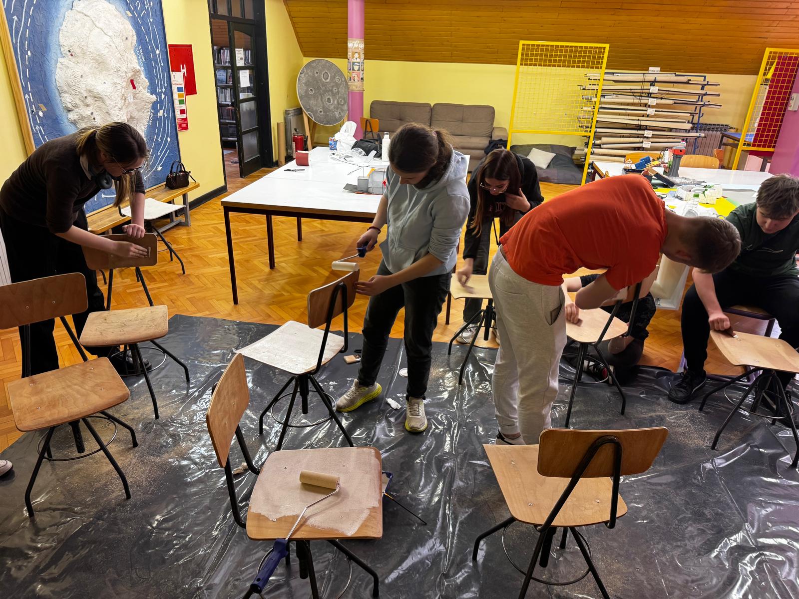 Učenici su, osim razgledavanja, mogli aktivno sudjelovati u radionicama, a jednu od njih predstavila je nastavnica Josipa Kelava Juraić – projekt uređenja učeničkog kutka, u kojem su učenici različitih smjerova zajednički obnovili stari namještaj, reciklirali stare gume i izradili funkcionalni namještaj te tako osmislili prostor namijenjen odmoru, učenju i zajedničkom radu.